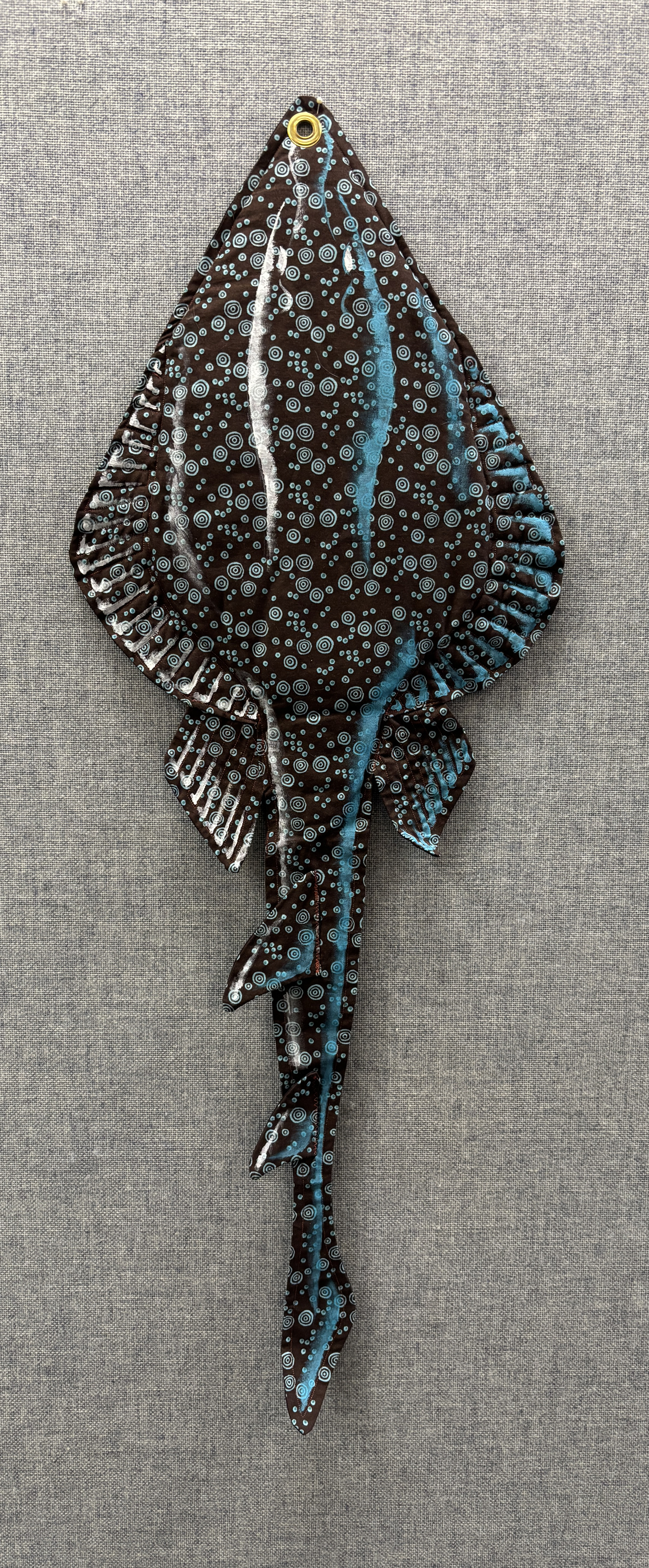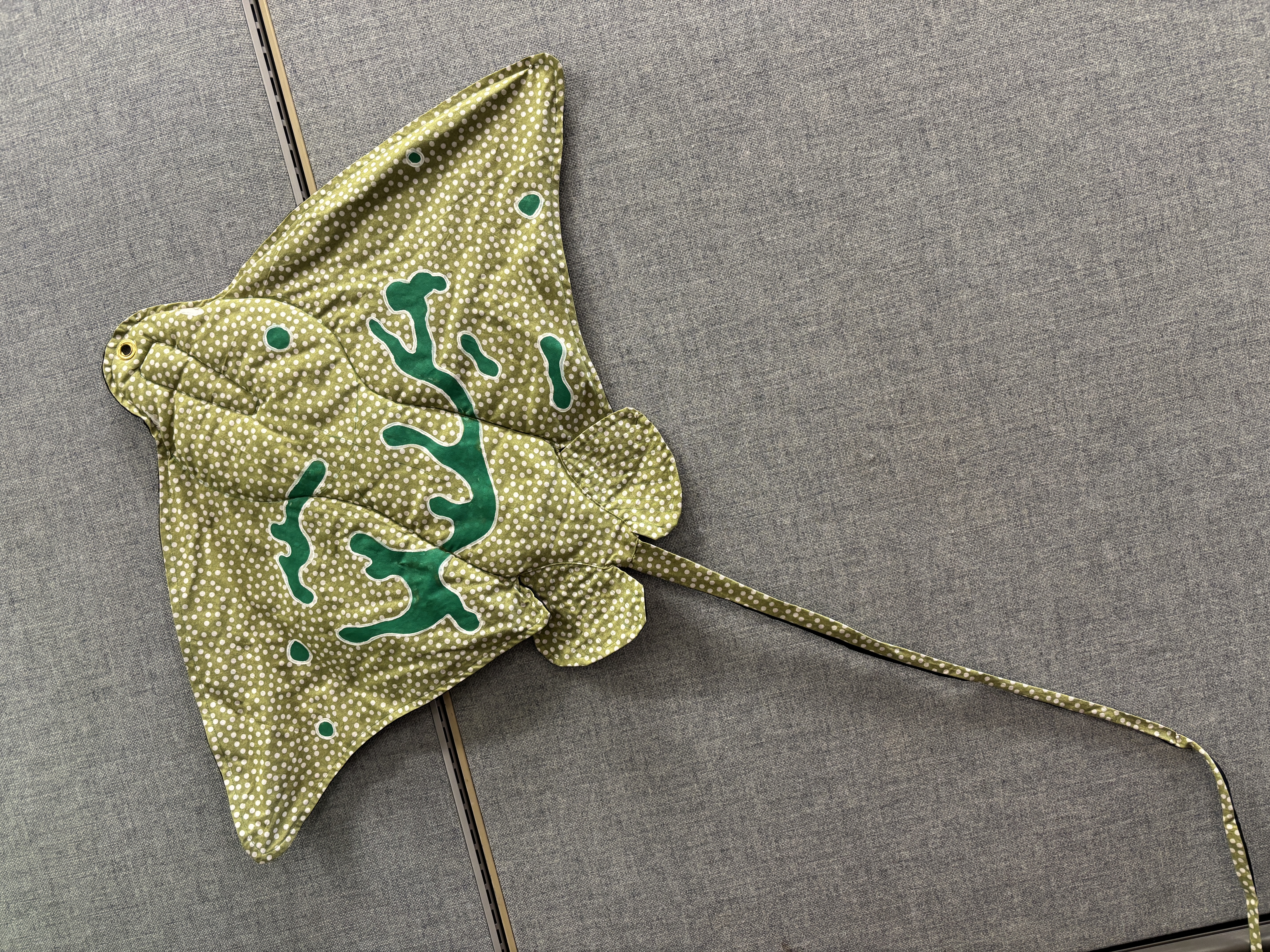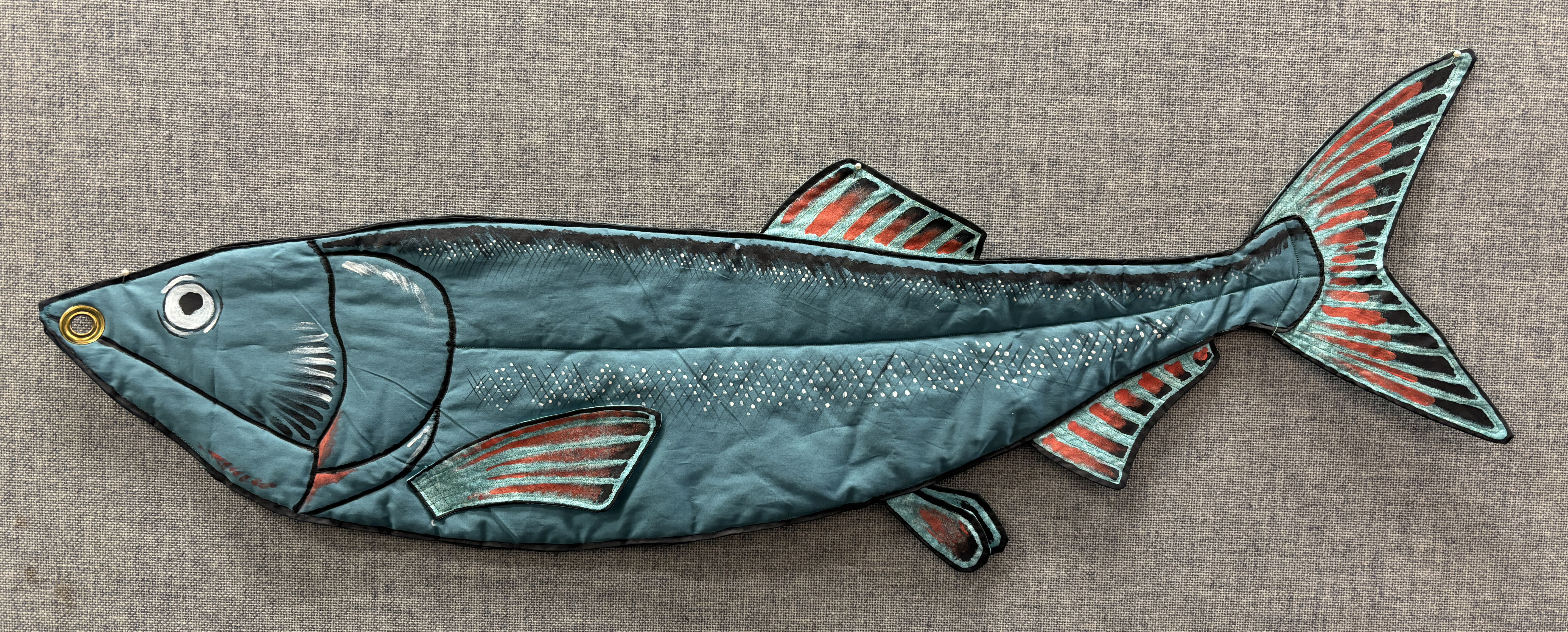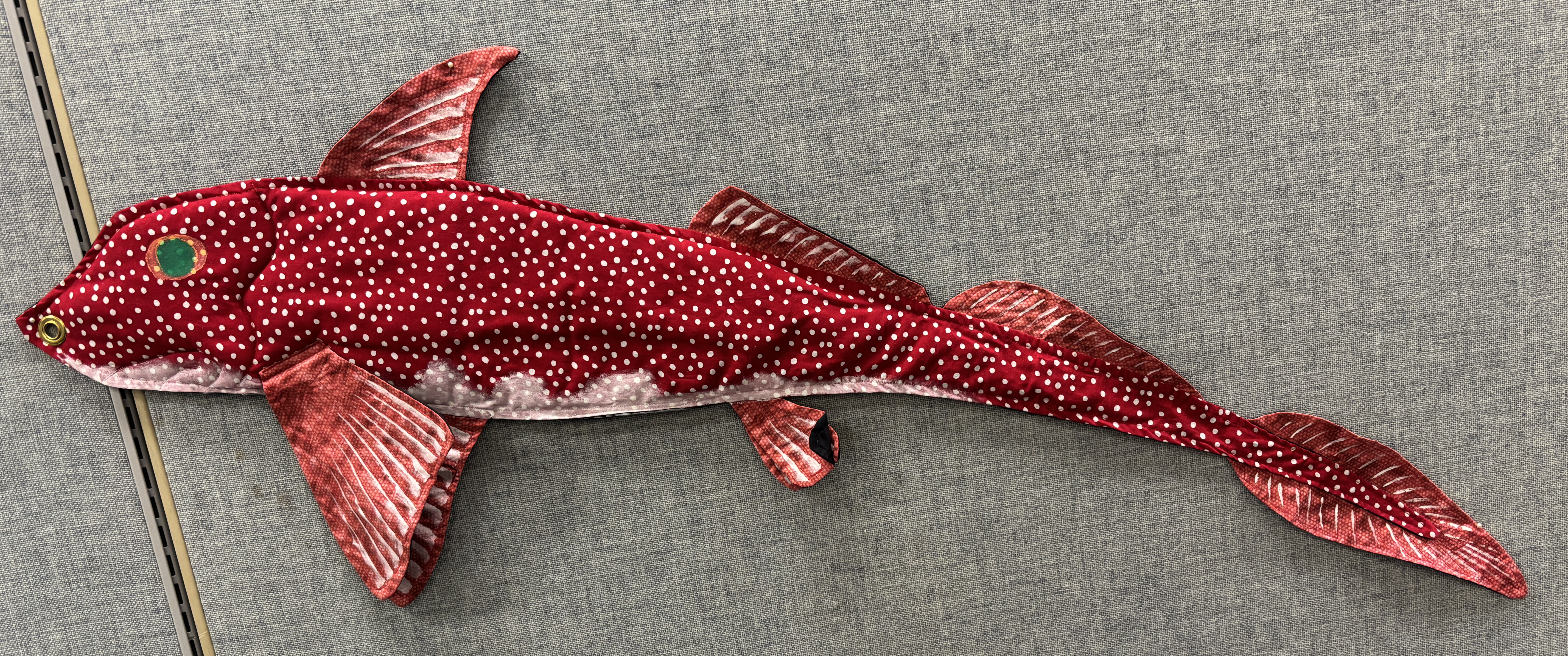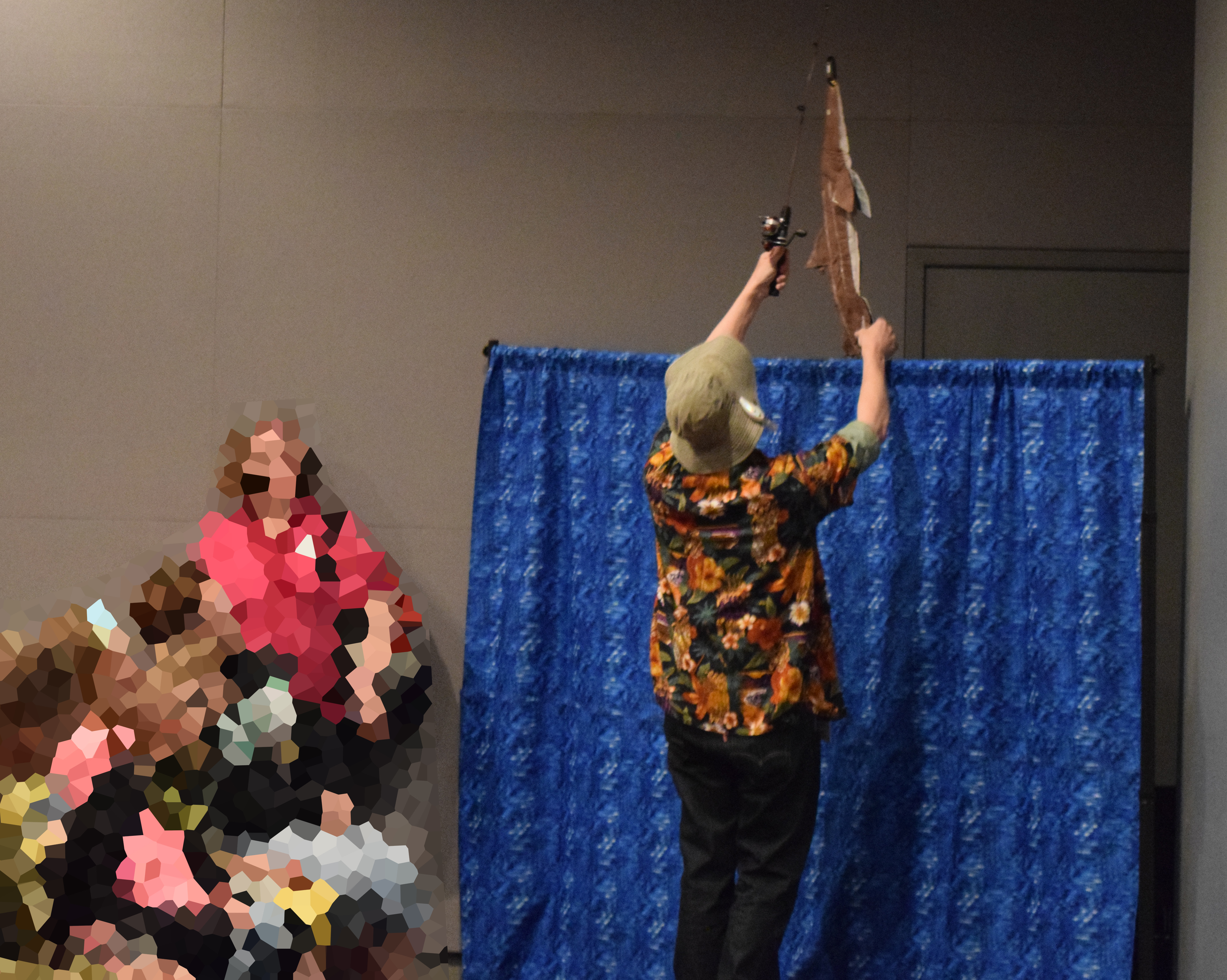 The puppet became a staple for the “Prehistoric Fishing” presentation / activity. One paleontologist would “fish” with a small fishing pole tipped with a carabiner, and the other paleontologist (me) would hide behind a screen and attach quilted and painted life-size fish onto the “hook.” Periodically, something stole the bait…