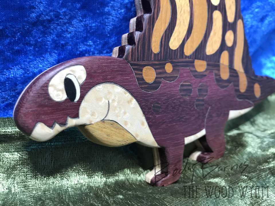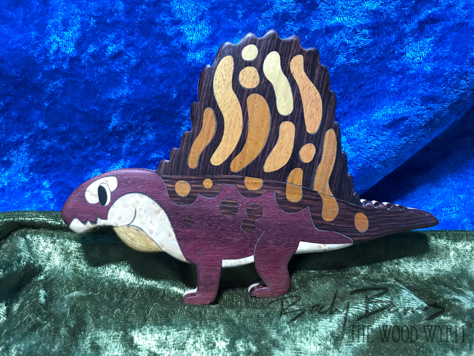 Dimetrodon! Purpleheart, Camatillo, Yellowheart, Osage, Chakta Viga, Maple, Canarywood, Holly, Ebony This little critter was for the Paleo Pines “Festive Ornament” contest! I scrolled through their dino-dex, and couldn’t resist doing this non-dino.