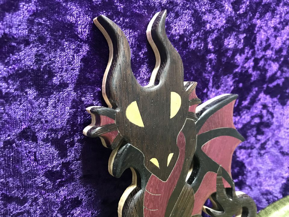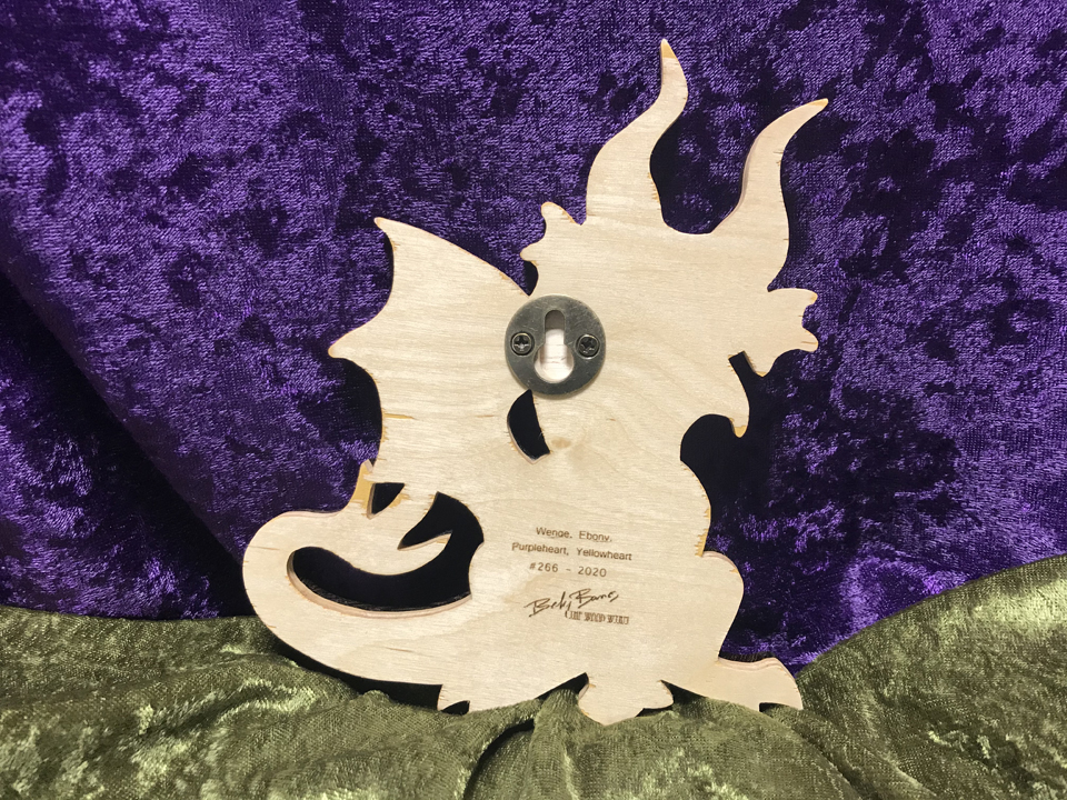 This was done for my “Treecember” personal project. My attempt at crafting one woodworking for every day of December. Knowing how long some of these take, the project actually began in October. Fool! is made from wenge (body), ebony (wings), purpleheart (webbing), and yellowheart (eyes / nose).