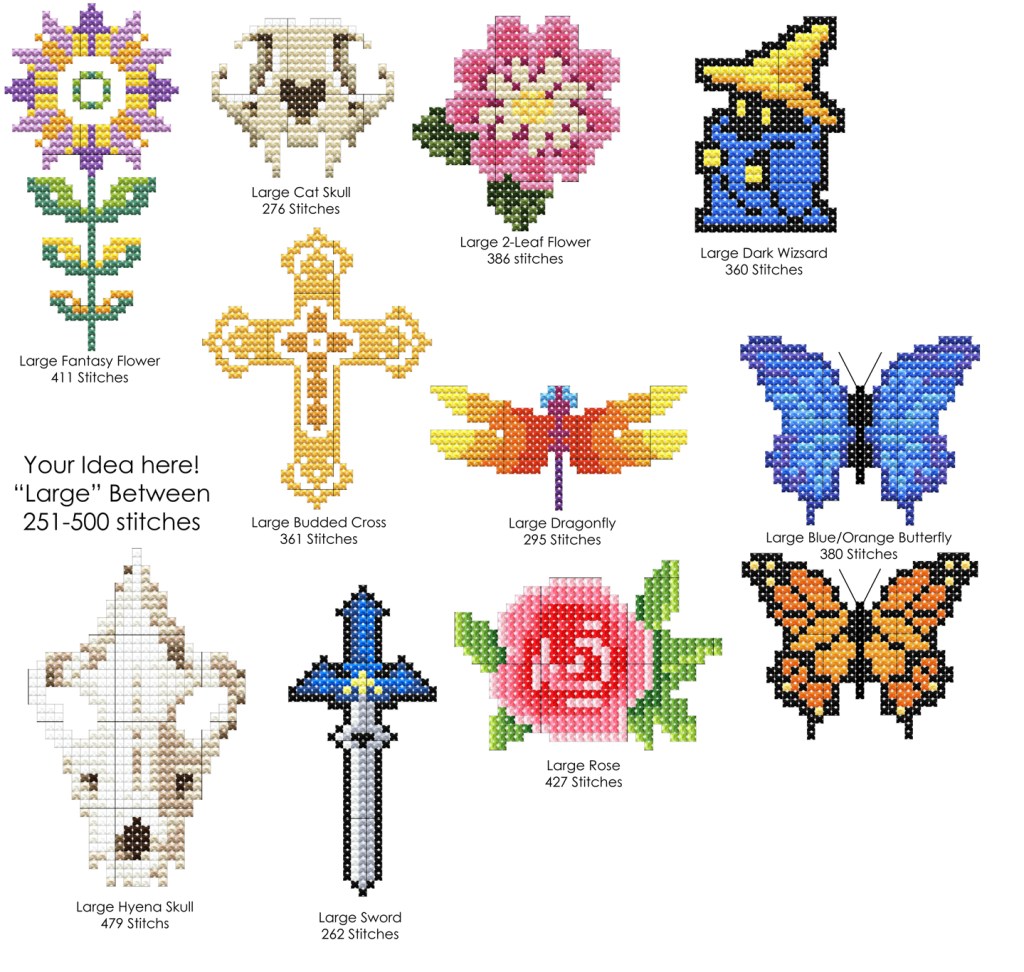 For my “Cross-stitch on Wood” class, each kit comes with 1 small and 1 medium blank, instructions, and embroidery floss. Extras, or outside of class, blanks are as follows (without floss):